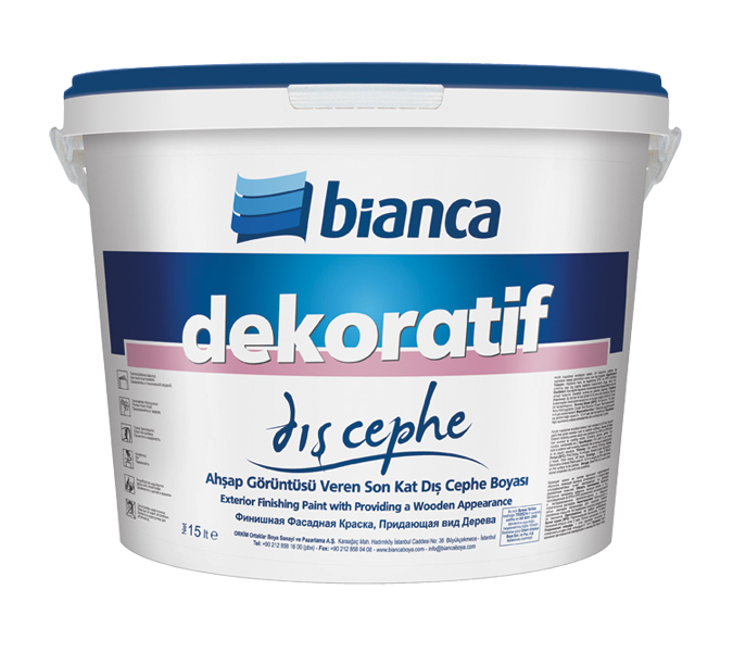 Bianca Dekoratif Dış Cephe boya uygulaması yapılacak yüzeyler; her türlü kir, yağ ve tozdan, eski boya kalıntılarından arındırılmış temiz ve kuru olmalıdır. Yüzeydeki pürüzler temizlenmelidir. Çatlaklar tamir harcı ile tamir edilmelidir. Uygulama sırasında yüzey ve ortam sıcaklığının en az +5°C ve en çok +30°C arasında olmasına dikkat edilmelidir. Yüzey hazırlığı tamamlandıktan sonra Bianca Dekoratif Dış Cephe Astar ile astarlanmış olması aderansı arttıracak ve boya sarfiyatında önemli ekonomi sağlayacaktır. Fırça veya rulo ile yüzeye tam ve eşit nüfuz edecek şekilde tek kat uygulanır. Geniş yüzeylerde dalgalanmayı önlemek için, malzeme daima aynı miktar su ile inceltilmeli, iyice karıştırılmalı ve yüzey üzerine ara vermeden uygulanmalıdır. Uygulama ortamında aşırı rüzgâr ve hava akımı olmamalıdır. 6 saat sonra Bianca Dekoratif Dış Cephe Boyası uygulaması yapılır.