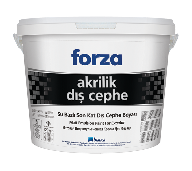 Bianca Forza Akrilik Dış Cephe Boya uygulaması yapılacak yüzeyler; her türlü kir, yağ, toz ve eski boya kalıntılarından arındırılmış temiz ve kuru olmalıdır. Yüzeydeki pürüzler raspa yapılarak temizlenmelidir. Çatlaklar akrilik esaslı macun ile tamir edilmelidir. Uygulama sırasında yüzey ve ortam sıcaklığının en az +5°C ve en çok +30°C arasında olmasına dikkat edilmelidir. Yüzey hazırlığı tamamlandıktan sonra Bianca Akrilik Dış Cephe Astar fırça veya rulo ile yüzeye tam ve eşit nüfuz edecek şekilde tek kat uygulanır. Uygulama ortamında aşırı rüzgar ve hava akımı olmamalıdır. 6 saat sonra Bianca Forza Akrilik Dış Cephe uygulaması yapılır.