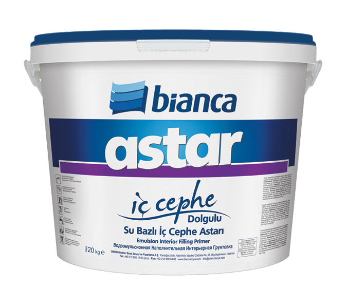 Bianca Dolgulu İç Cephe Astarı uygulaması yapılacak yüzeyler; her türlü kir, yağ ve tozdan arındırılmış temiz ve kuru olmalıdır. Bianca Dolgulu İç Cephe Astarı tek kat olarak fırça, rulo veya püskürtme ile uygulanır. Bianca Dolgulu İç Cephe Astarı uygulandıktan 6 saat sonra sonkat boya uygulamasına geçilir. Uygulama esnasında yüzey ve ortam sıcaklığının en az +5ºC en çok +30ºC arasında olmasına dikkat edilmelidir.