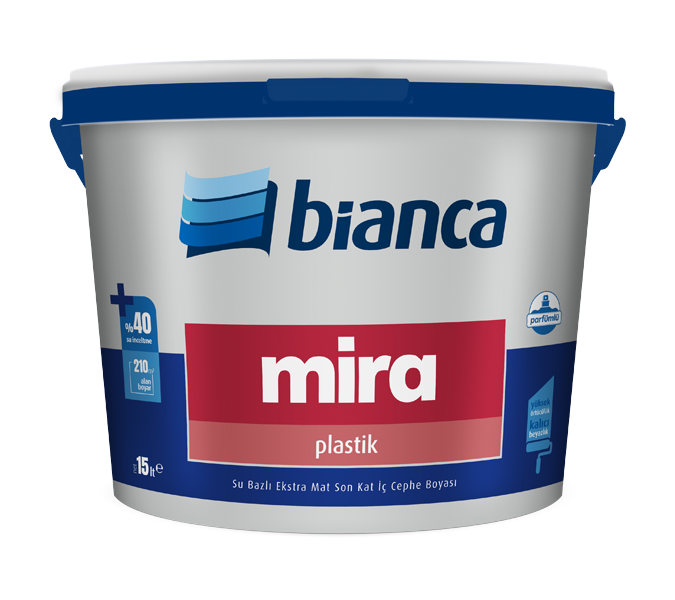 • Bianca Mira Plastik, ekonomi ve kaliteyi birarada veren iç cephe duvar boyasıdır.